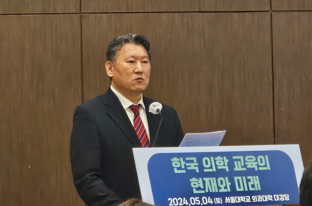 4일 서울대학교 의과대학 대강당에서 열린 '한국 의학 교육의 현재와 미래' 세미나에서 김창수 전국의과대학 교수협의회장<사진>은 정부에서 서울고등법원에서 요구한 자료를 제출하지 않은 채 '2025 대입전형시행계획 의과대학 모집인원 제출 현황'을 공개한 것에 대해 "2000명 증원과 배분이 깜깜이 밀실 야합에 의한 것임을 스스로 자인하는 것"이라고 강하게 비판하는 성명서를 발표했다.