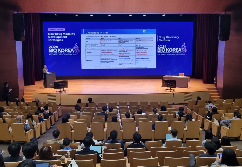 9일 서울 코엑스(COEX)서 진행 중인 '바이오 코리아 2024(BIO KOREA 2024)'(이하 바이오코리아)는 '차세대 신약 플랫폼 개발 전략'을 주제로 컨퍼런스 스페셜 세션을 마련, '표적단백질분해치료제(TPD)', '항체-약물접합체(ADC)', '세포·유전자치료제(CGT)' 등 다양한 신규 모달리티를 연구개발하는 국내외 기업의 인사이트를 공유했다.