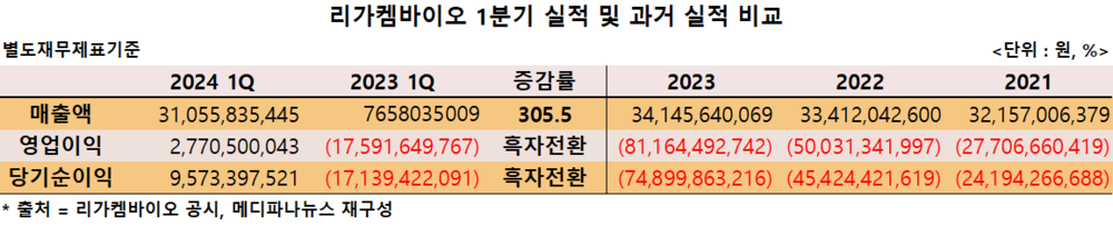 한편, 리가켐바이오 1분기 영업이익은 27억7050만원으로 전년동기 175억9165만원 손실에서 흑자로 전환했다. 당기순이익 또한 95억7340만원으로 전년동기 171억3942만원 손실에서 흑자전환을 이뤘다.