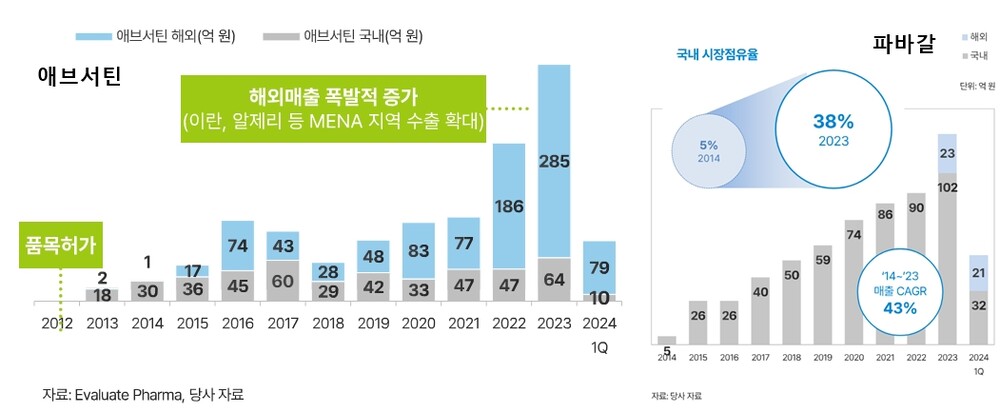 생산시설을 복구하는 기간 동안 대체 치료제에 대한 니즈가 확산되면서, 이수앱지스의 '애브서틴'이 대체제로 주목받았다. 이에 2분기부터 애브서틴의 수출 매출이 크게 증가, 3분기만에 2022년 한 해 수출액인 185억6800만원을 뛰어넘은 209억8600만원을 기록하는 등 매출 성장세는 현재진행형이다.