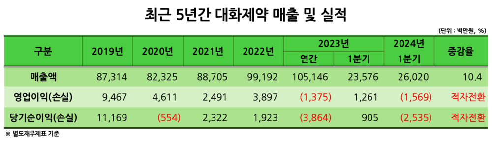 한편, 대화제약은 지난 4월 노병태 대표이사가 사임하며 김은석 단독 대표이사 체제로 전환된 상태다. 김 대표는 김수지 명예회장의 장남으로 최근 꾸준히 회사 지분율을 늘리고 있다. 2022년 12월 16만 6000주를 보유하고 있던 김은석 대표는 지난 3월 15일 기준 19만 5000주를 보유하며 지분율을 1.05%로 끌어올렸다.