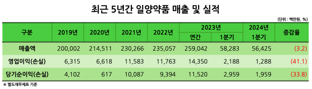 최근 공개된 공시에 따르면 일양약품은 1분기 별도재무제표 기준 매출 564.3억원을 기록했다. 이는 전년 동기 582.8억원 대비 3.2% 감소한 수치다.