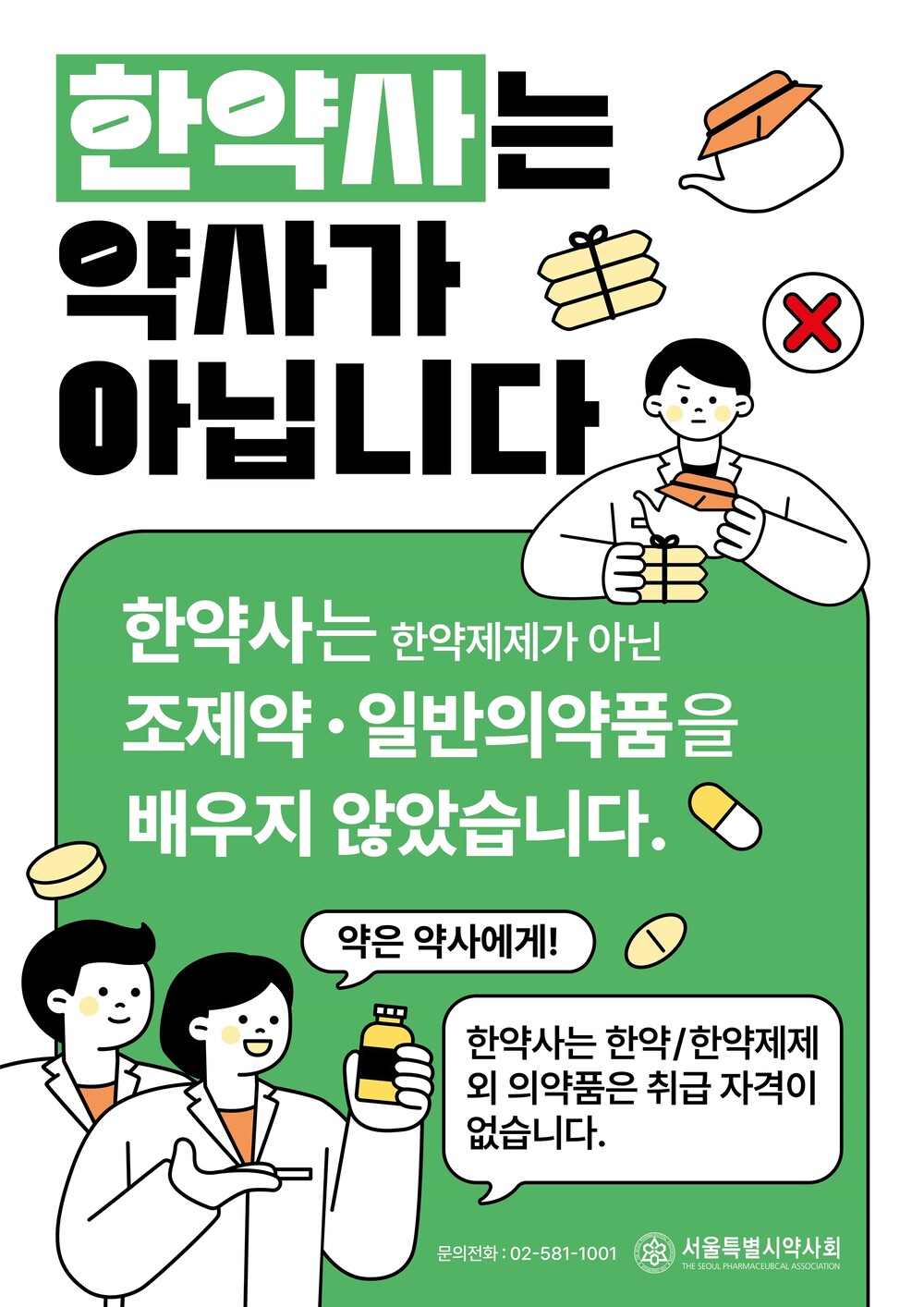 서울시약사회는 현행 의료법과 같이 약사는 약국을, 한약사는 한약국만을 개설할 수 있도록 종별을 구분하고, 각자 면허에 따라 의약품을 취급하고 면허범위를 벗어난 행위를 처벌할 수 있는 약사법 개정을 강력하게 촉구하는 바이다.