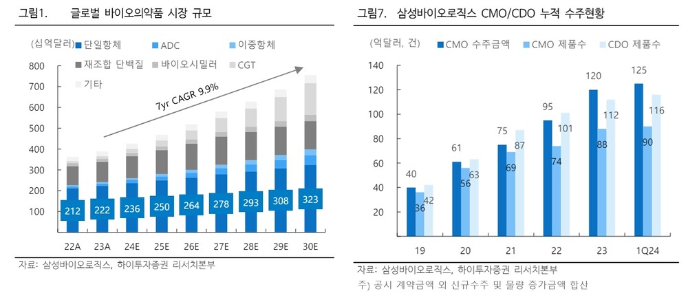 하이투자증권 자료에 따르면, 바이오의약품 시장은 2023년 기준 3890억 달러(한화 535조원)에서 2030년 7550억 달러(한화 1039조원) 규모에 이를 것으로 추정된다.