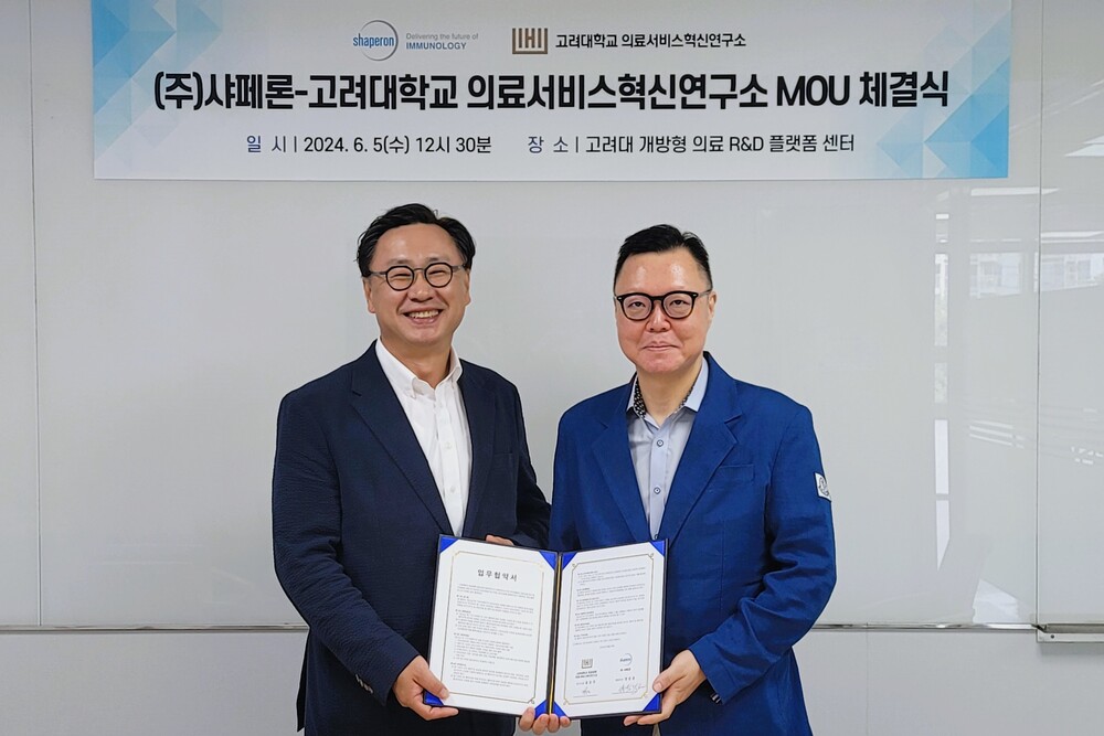 샤페론 측은 "이번 협약에 따라 샤페론의 염증 복합체 연구에 대한 전문성과 고려대 의료서비스혁신연구소의 의약품 중개연구 및 임상연구 역량을 바탕으로 미충족 니즈가 큰 심장 수술 후 합병증 관리에 새로운 전기가 마련될 것"이라고 말했다.