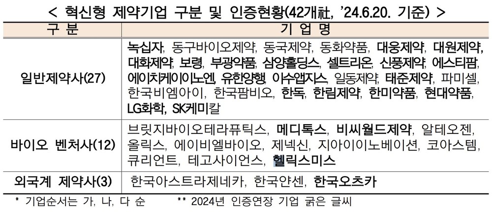 혁신형 제약기업 중 올해 6월 인증만료 예정 기업을 대상으로 인증연장 심사를 실시한 결과 24개 기업에 대해 인증 연장(재인증)이 결정됐다.