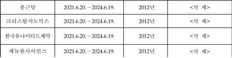 이와 달리 ▲종근당 ▲크리스탈지노믹스 ▲한국유나이티드제약 ▲제뉴원사이언스 등 4개 기업은 19일을 기점으로 혁신형 제약기업 인증이 만료됐다.