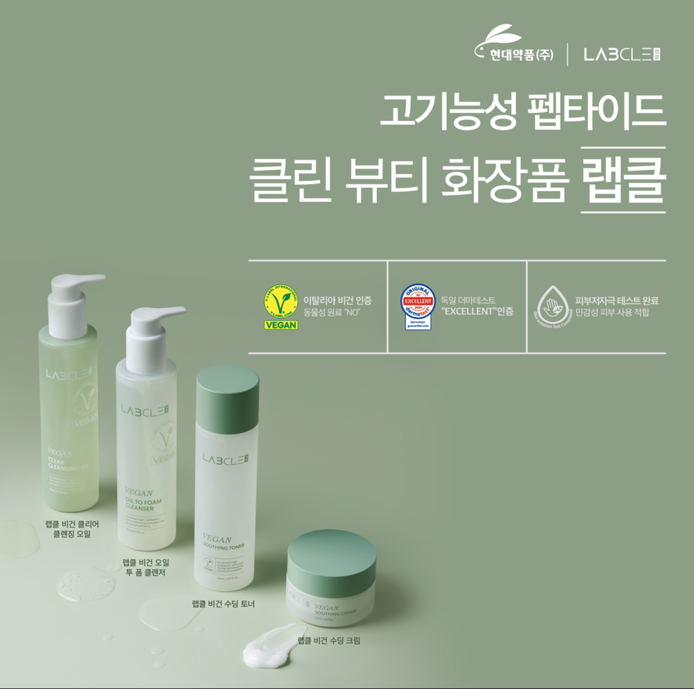한편, 현대약품 랩클은 과피를 발효한 업사이클링 원료를 특허 펩타이드와 혼합한 안티에이징 기능성 펩타이드 라인과 식물 유래 성분의 저자극 비건 레시피 라인도 선보이고 있다.