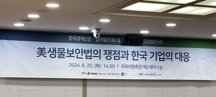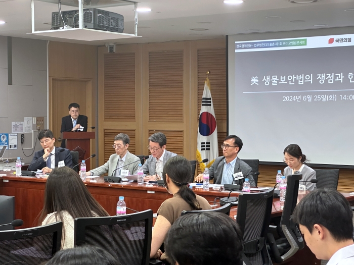 이어 법무법인 율촌의 최준영 전문위원이 '미중 대결의 동향과 영향'을 발표했으며, 박지웅 변호사는 '생물보안법' 해설을 통해 해당 법안이 기업에 미칠 영향을 설명했다. 나희정 변호사는 바이오 기술/데이터 등에 관한 IP이수를 중심으로 생물보안법 대응 전략 및 유의점을 전했다.