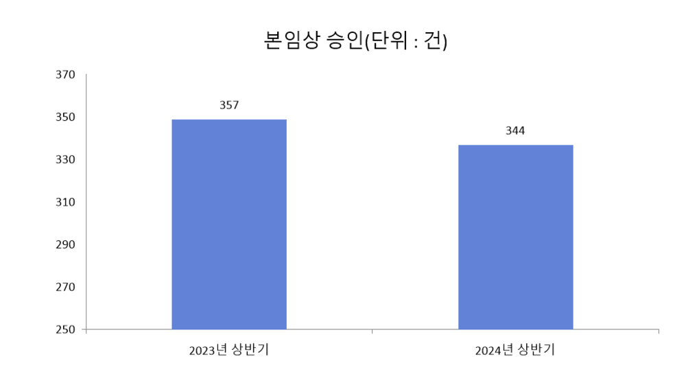 1일 메디파나뉴스가 취합한 통계에 따르면, 식품의약품안전처가 올해 상반기에 승인한 임상은 499건으로, 전년 556건 대비 10.3% 감소했다. 특히 연구자 임상과 생동을 제외한 본임상 승인은 344건으로 전년 357건 대비 3.6% 감소했다.