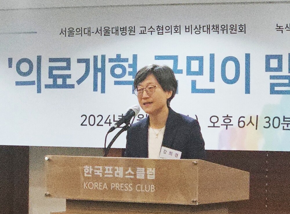 공모를 통해 과학적 의사수 추계가 도출됐을 때 정부에서 이를 받아줄지 묻는 질문에 서울의대·서울대병원 교수협의회 비상대책위원회(서울의대비대위) 강희경 위원장<사진>은 "선택은 정책결정권자의 몫이다"라고 답했다.