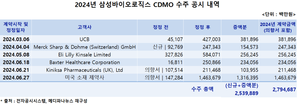 이로써 삼성바이오로직스는 6개월 만에 총 7건의 계약을 달성, 신규 및 증액 계약 금액 기준 연 누적 수주 2조5000억원을 돌파했다. 의향서 체결 금액을 포함한 최종 계약을 신규 계약으로 볼 경우에는 약 2조8000억원에 달하는 계약을 달성한 셈이다.
