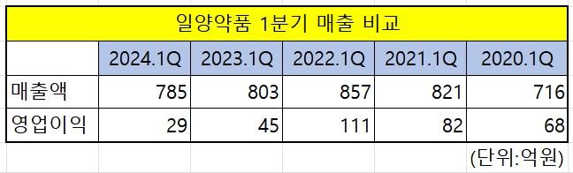 이러한 노력은 회사의 매출 활로 찾기와 무관하지 않다. 일양약품은 지난 1분기 매출액 785억원을 기록했다. 지난해 같은기간 매출액 803억원, 2022년 857억원, 2021년 821억원에 비해 소폭 감소한 것이다.