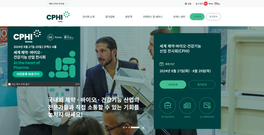 올해 8월 27일부터 29일까지 코엑스A홀에서 개최되는 'CPHI/Hi Korea 2024'는 글로벌 제약·바이오 뿐만 아니라 건강기능 산업 분야의 기업까지 판로개척 및 투자자 유치를 위한 B2B(기업간 거래) 필수 관문으로 통용된다. 이미 100% 부스 신청이 완료되며 산업계의 이목이 집중되고 있다.