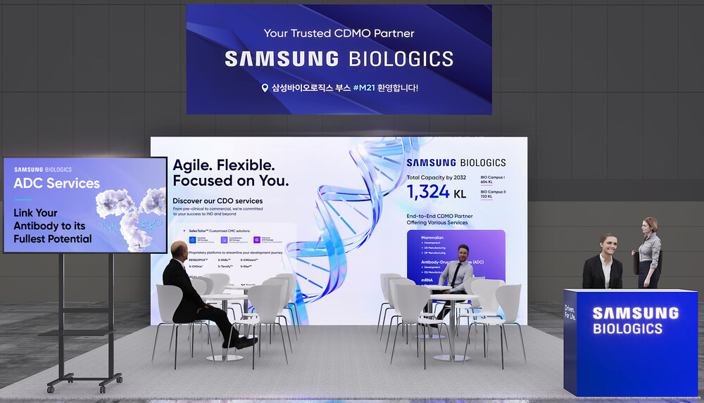 부스에는 LED 스크린과 월 그래픽을 통해 2032년까지 확보 예정인 세계 최대 규모의 생산능력(132만 4,000리터), 위탁개발 서비스의 차별화된 경쟁력과 함께 항체·약물 접합체(ADC)·메신저 리보핵산(mRNA) 등 확장된 포트폴리오를 소개한다.