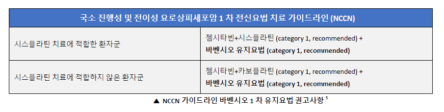 특히 NCCN 가이드라인은 2024년 최신판을 통해 바벤시오를 category 1등급으로 권고하고 있죠.