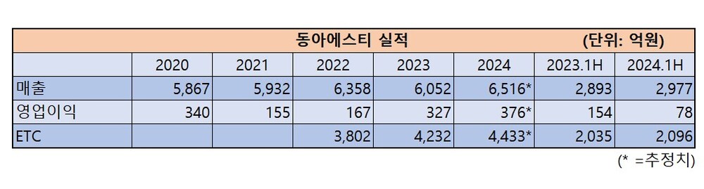 30일 금융감독원 전자공시시스템에 따르면, 동아에스티의 상반기 매출액과 영업이익은 각각 2977억원, 78억원으로 집계됐다. 이는 지난해 상반기 2893억원, 154억원과 비교해 2.9% 상승, 49.3% 감소한 수치다. 매출은 소폭 증가했으나, 영업이익은 절반 가까이 감소했다.