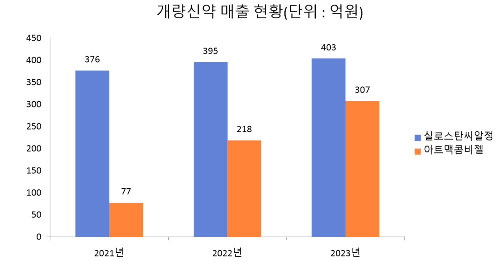 해당 제품군 지난해 매출은 403억원으로, 전년 동기 대비 약 2% 증가했다. 이 회사는 최근 사업보고서에서 2022년·2021년 실로스탄씨알정 제품군 매출이 395억원, 376억원이라며, 전년 같은 기간과 비교해 5%, 1.1%가량 늘었다고 기재했다.