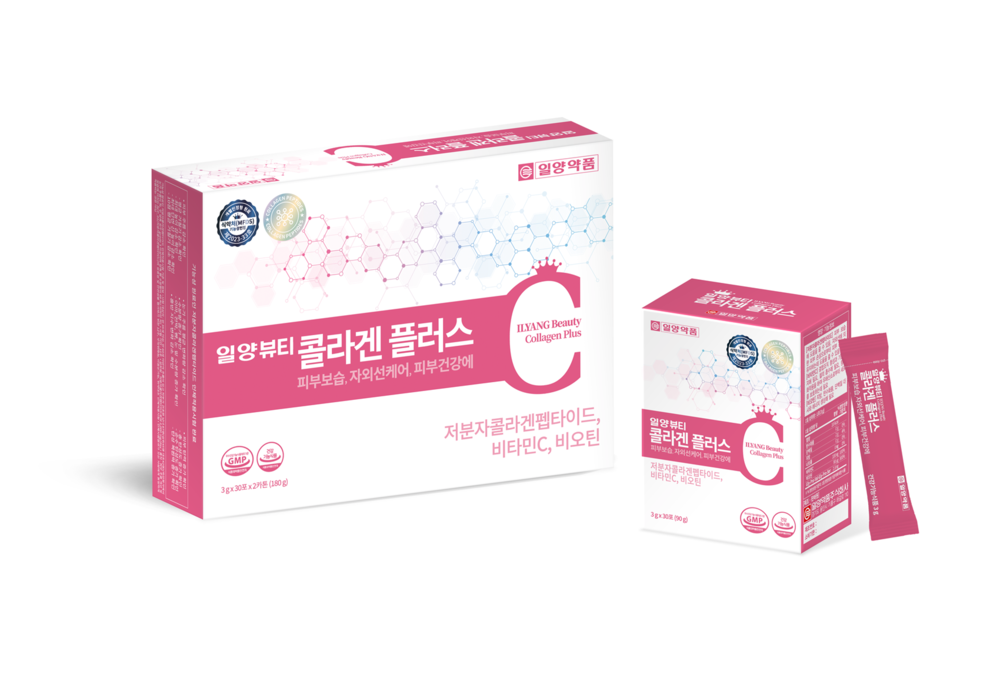 '일양 뷰티 콜라겐 플러스'는 피부 보습과 자외선에 의한 피부손상 등 피부건강에 도움을 줄 수 있는 식약처 인정 개별인정형 저분자콜라겐펩타이드를 2000mg 함유했으며, 세포 항산화와 단백질 대사 및 에너지 생성에 중요하고 체내 합성이 안돼 외부 섭취가 필요한 비오틴 300%와 비타민C 100%를 강화했다.