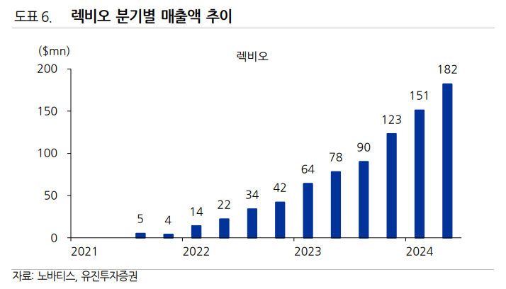 권해순 유진투자증권 연구원은 "올해 렉비오 원료 추정 공급량이 약 400억원이라는 것을 감안하면 2025년 공급물량이 약 2배 증가했다"고 밝혔다.
