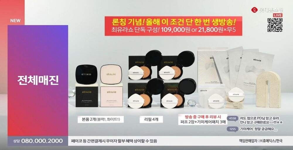 한편, 휴메딕스는 엘라비에 기미 쿠션의 론칭 방송 매진에 힘입어 후속 방송을 추후 진행할 계획이며, 현재는 엘라비에 홈페이지와 공식 스마트스토어를 통해 구매할 수 있다.