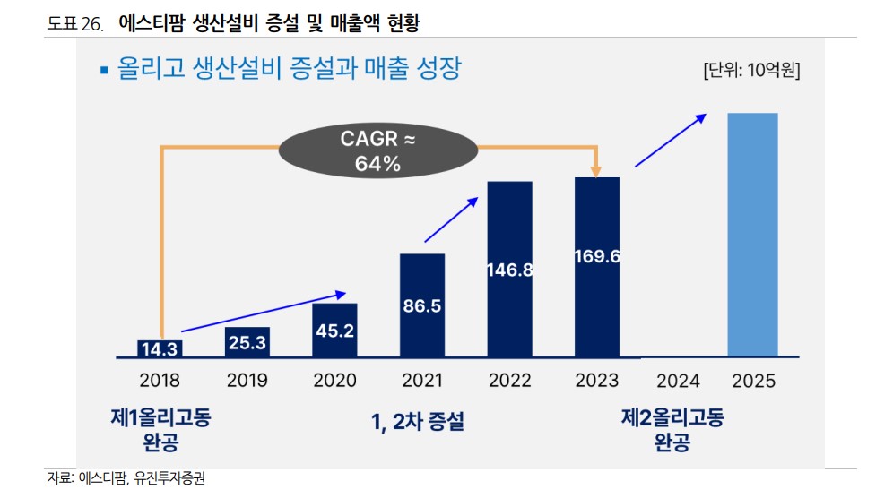 렉비오 원료 생산이 증가하면서 에스티팜 수익성 상승도 기대할 수 있을 것으로 내다봤다.
