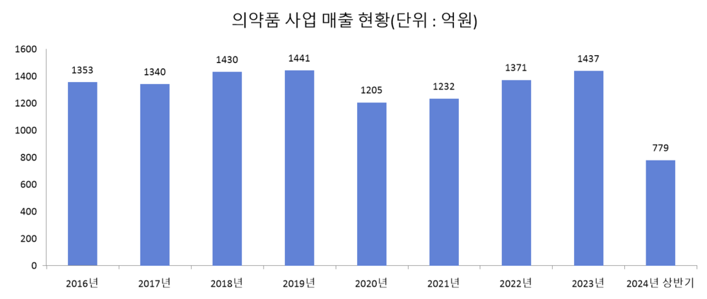 지난해 명문제약이 의약품 사업에서 달성한 매출은 1437억원으로, 전년 같은 기간과 비교해 4.8% 증가했다. 이 회사는 2022년과 2021년에 의약품 사업 매출 1371억원, 1232억원을 기록하며 전년 동기 대비 11.3%, 2.3% 늘린 바 있다.