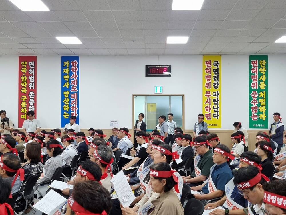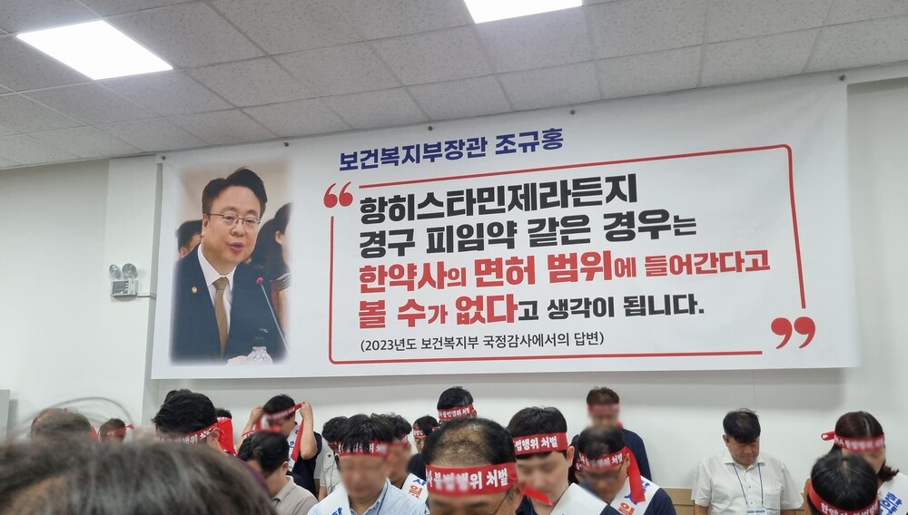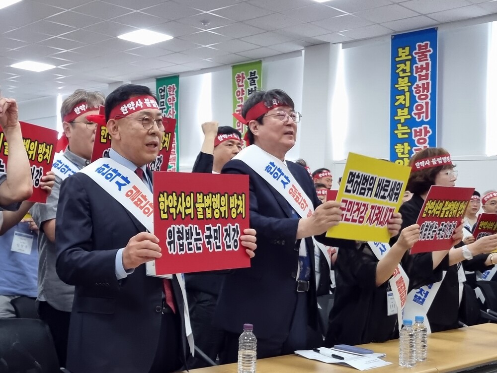 그러면서 "식약처와 한약제제 분류 관련 내용으로 6개월을 협의하는 중에 한약사들이 전문의약품을 사입을 해서 조제한다는 정보가 들어왔다"면서 "복지부와 협의했다. 전문의약품 사용은 무면허 행위다. 무면허 행위를 정부가 보고 있는 것은 정부는 일을 하고 있지 않은 것, 업무태만"이라고 지적했다.