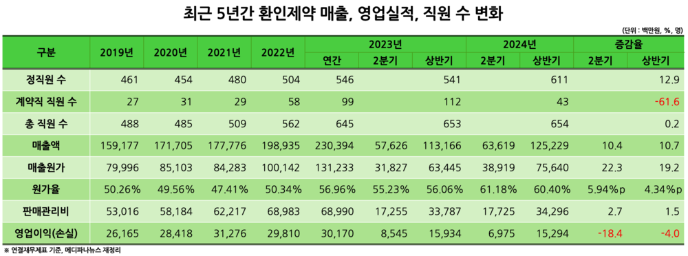 회사 영업이익은 2019년 262억원에서 2021년 313억원으로 증가한 이후 2022년과 2023년 300억원 내외를 기록했다. 올해 상반기 영업이익은 153억원으로 전년 동기 159억원 대비 소폭 감소했다.