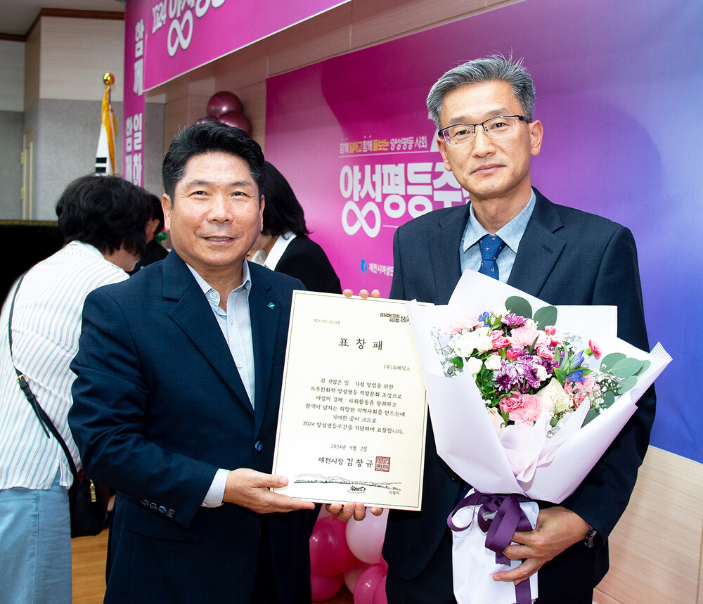 이를 통해 고용단계에서 사회적 책임뿐 아니라 일과 삶이 조화로운 워라벨 문화, 가족친화적인 직장문화 조성에 앞장섰다. 이러한 노력을 바탕으로 양성평등 기업환경조성에 기여한 공로를 인정받아 이날 기념식에서 제천시와 여성단체협의회로부터 우수기업 표창을 수상하게 됐다고 회사측은 설명했다.