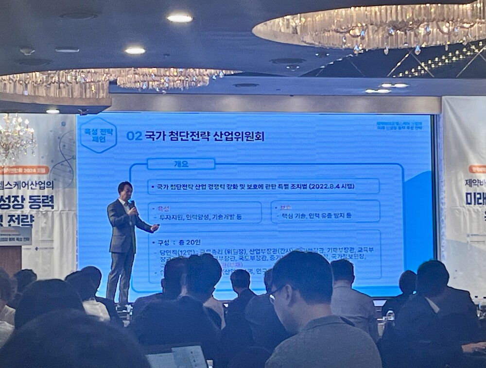 이병건 국가첨단전략산업위원회 위원은 10일 오전 '제약바이오헬스케어 산업의 미래 신성장 동력 육성전략'이라는 주제로 발표했다.