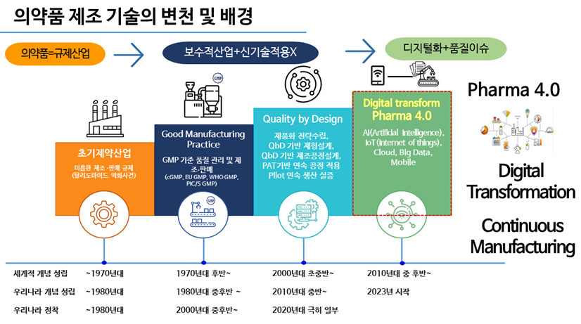 이러한 의약품 제조 및 생산 부문의 기술혁신을 위해 디지털 전환 기반 의약품 제조혁신 관련 플랫폼 기술들이 요구된다.