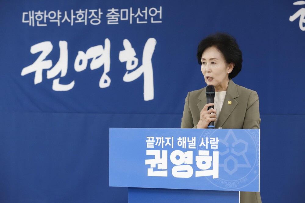 권영희 후보는 출마선언문에서 "저는 제가 약사인 것이 가장 자랑스럽다. 권영희를 한 마디로 표현하면 '약사를 사랑하는 사람, 약사가 사회로부터 존경받고 약사직능의 독립성이 확보되기를 열망하는 사람'이다. 이것이 저의 원동력"이라고 말했다.