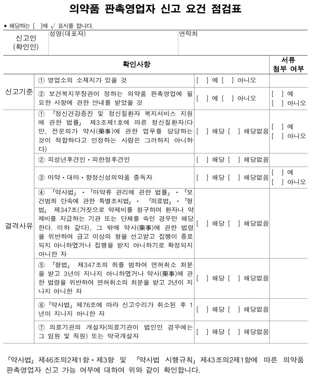 의약품 판촉영업자로 신고하기 위해서는 ▲영업소의 소재지가 있어야 하며 ▲보건복지부장관이 정하는 의약품 판촉영업에 필요한 사항에 관한 안내를 받아야 한다.