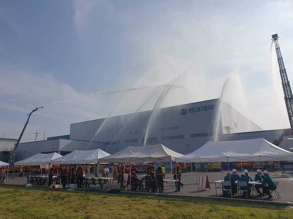 동아제약은 지난 11일 도상훈련(사고 상황을 가정해 일어날 수 있는 각종 현안에 대해 논의하는 토론 기반의 훈련)을 시작으로 14일부터 이틀간 부분훈련 및 차량 배치훈련을 거쳐, 16일 오후 14시에 본 훈련을 진행했다고 설명했다.