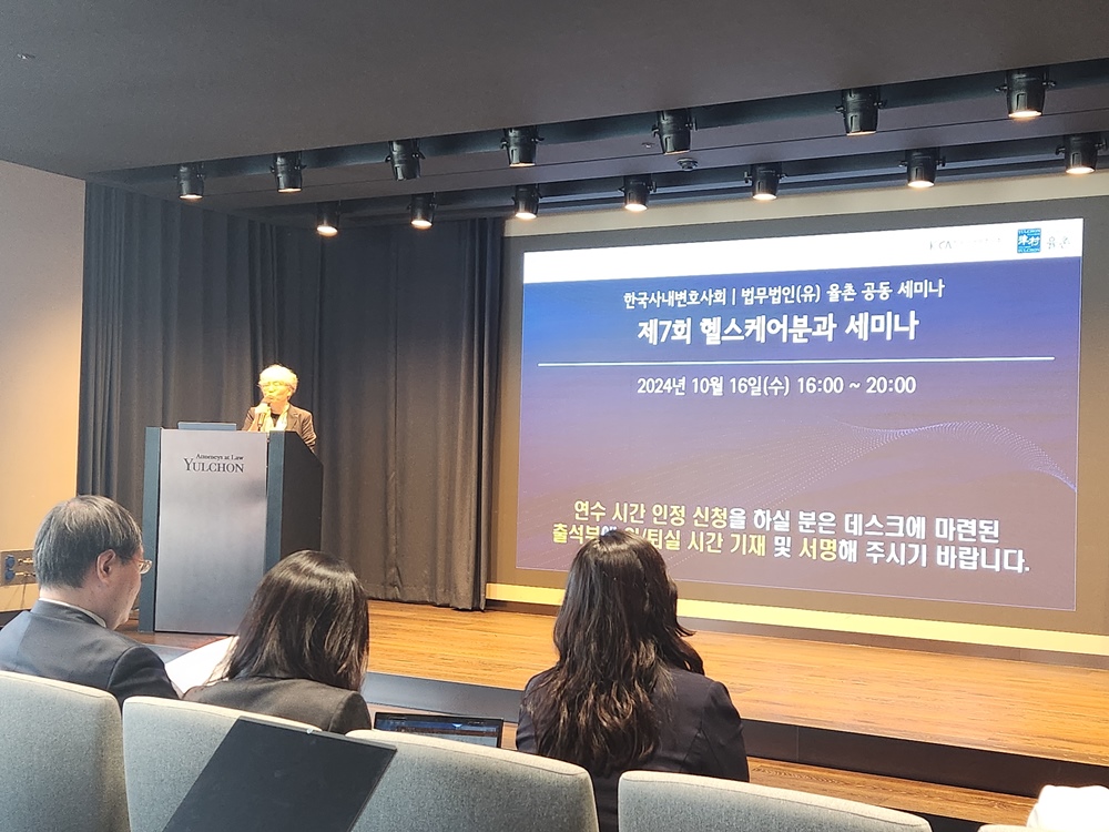 한국사내변호사회 헬스케어분과위원회와 법무법인(유)율촌은 16일 서울 삼성동 율촌 39층 Lecture Hall에서 제7회 헬스케어분과 세미나를 공동으로 개최했다.