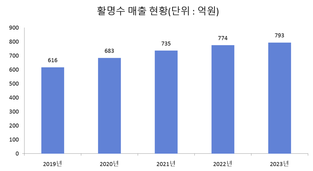 활명수 매출은 증가하는 추세다. 동화약품은 공시 자료에서 해당 품목 매출이 2019년 616억원에서 지난해 793억원으로 28.8% 늘었다며, 최근 5년간 매년 최소 2.4%, 최대 11% 증가했다고 밝혔다.