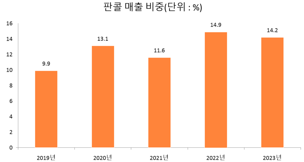 메디파나뉴스가 매출 비중을 조사한 결과, 판콜류 제품 비중은 2020년에 10%대로 올라선 후 최근까지 회사 매출에서 매년 11.6%를 상회했다. 해당 품목이 올해 상반기 매출에서 차지하는 비중은 12.2%다.