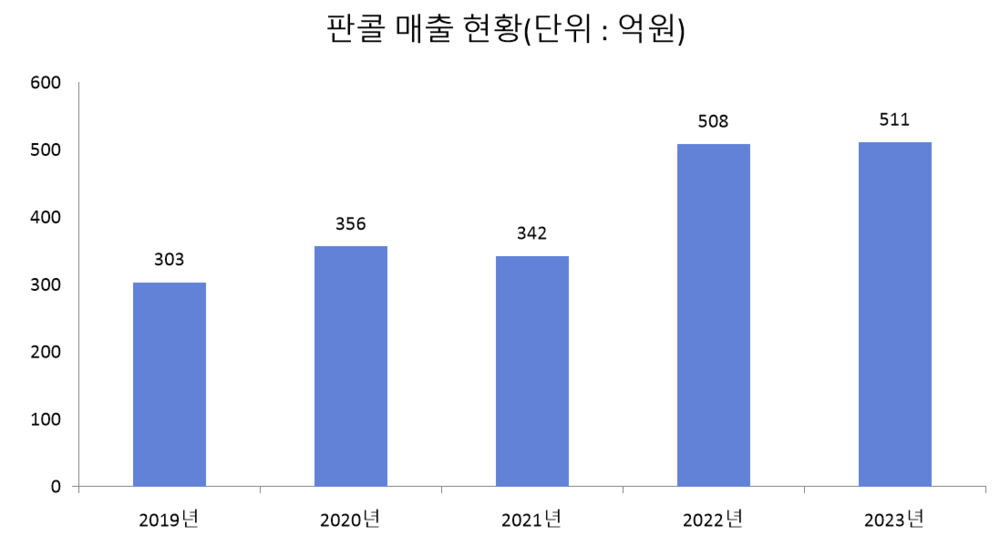 판콜류 제품 매출은 증가 흐름을 이어가고 있다. 동화약품은 2021년을 제외하고, 해당 품목 매출이 최근 5년간 매년 늘어나는 걸 확인했다. 일례로 2022년 판콜류 제품 매출은 전년 대비 50% 가까이 증가하며, 회사 매출 기여도를 높였다.