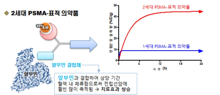 한편 FC705는 알부민 결합체가 도입된 2세대 의약품이다. 다른 화합물에 비해 친수성이 높아 비특이적 결합이 기본적으로 낮은 특성을 가지고 있다.