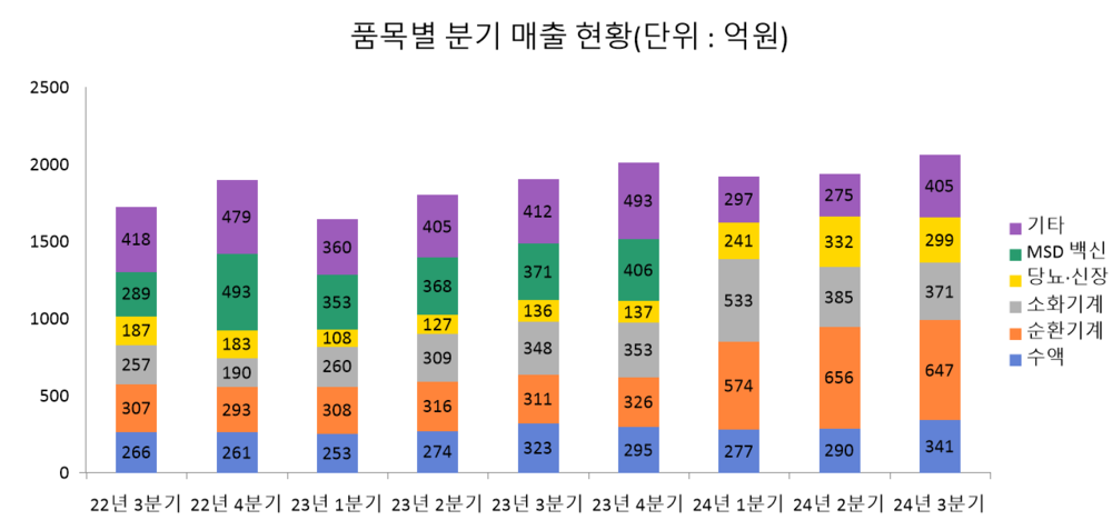 소화기계 전문의약품은 순환기계 ETC에 이어 전문의약품 분기 매출 확대에 큰 영향을 미친 품목이다. 이 회사는 실적 자료를 통해 소화기계 ETC 분기 매출 증가율이 다른 품목 대비 상대적으로 높았다고 밝혔다.