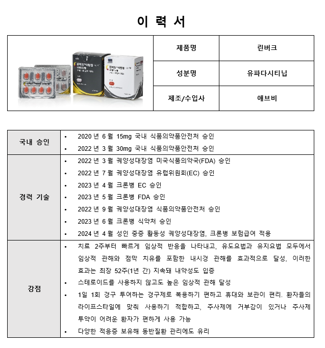 [메디파나뉴스 = 최성훈 기자] 저는 애브비 '린버크(성분명 유파다시티닙)'라고 합니다. 저의 임무는 장내 염증을 치료하고, 환자분들이 일상 속에서 불편함 없이 활기찬 삶을 살도록 돕는 것이랍니다.