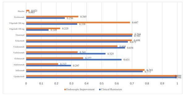 저의 임상적 관해 유도 SUCRA 점수는 0.996였고, 내시경적 개선 유도 SUCRA 점수는 0.999였습니다. 사실상 만점에 가까운 점수인 셈이죠.