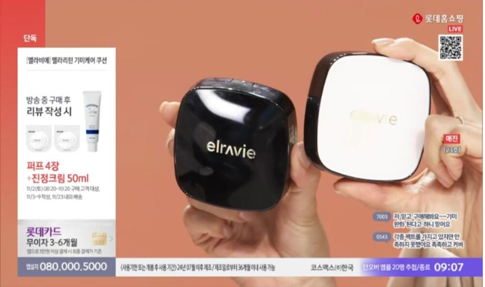 이 회사는 이날 방송에서 1시간만에 8억원이 넘는 매출을 기록했다며, 엘라비에 멜라 리턴 기미쿠션 23호, 21호 제품이 매진됐다고 설명했다.