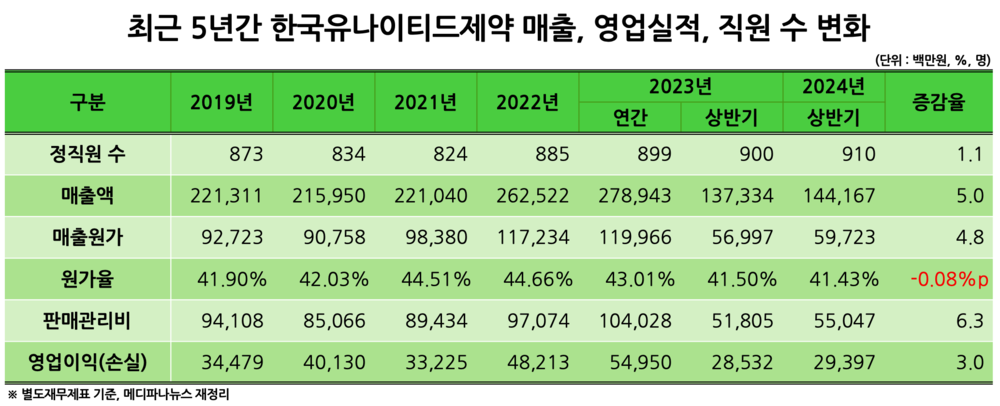 이같이 한국유나이티드제약이 정직원을 꾸준히 늘릴 수 있는 것은 지속적인 매출 성장과 함께 영업 이익에서도 호실적을 거둔 것과 무관하지 않다.