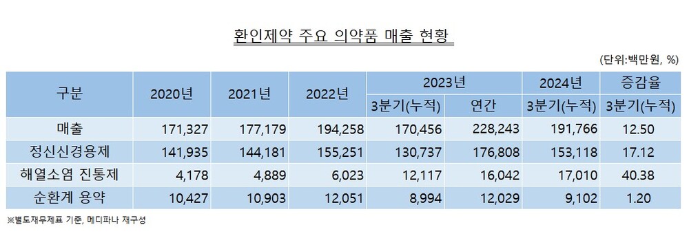 또한 정신신경용제 외에 해열소염 진통제, 순환계 용약 등 다른 분야에서도 일제히 매출 증가를 보이고 있어 주목된다.