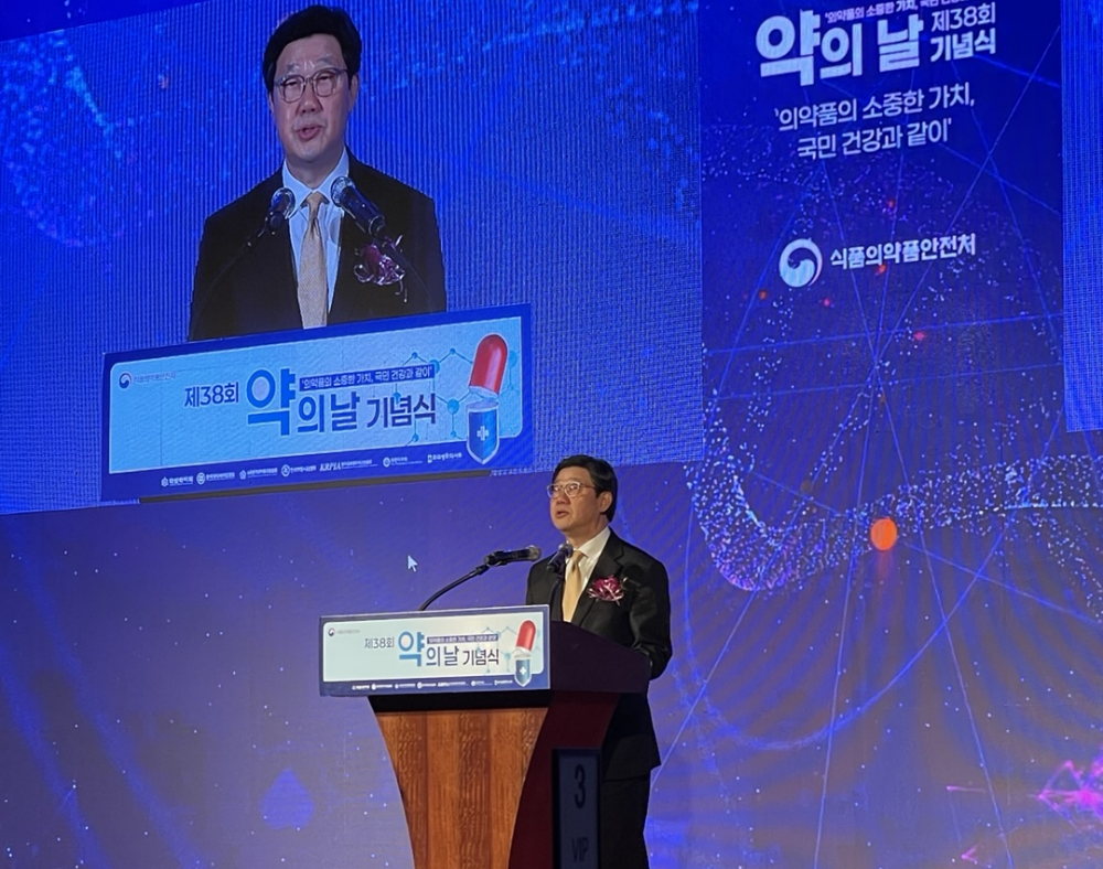 정윤순 보건복지부 보건의료정책실장은 조규홍 보건복지부 장관 축사를 대독했다. 정 실장은 "의약품 안전 및 제약산업 발전에 기여한 공로로 수상하시는 유공자에게 축하의 말씀을 드린다"며 "제약바이오 산업은 국민의 건강을 책임지는 핵심 산업이자 한국의 미래를 이끌어갈 중요 성장 동력"이라고 말했다.