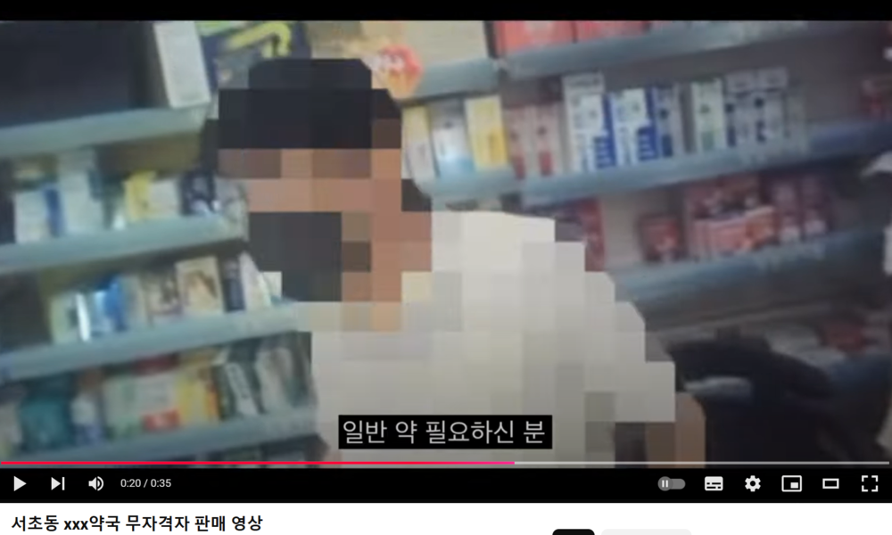 지난 25일 유튜브 채널 클린약국에 '서초동 xxx약국 무자격자 판매 영상'이라는 제목의 영상이 게재됐다. 해당 영상에서는 약사가 아닌 무자격자가 의약품을 판매하고 있는 영상이 짧게 올라왔다.