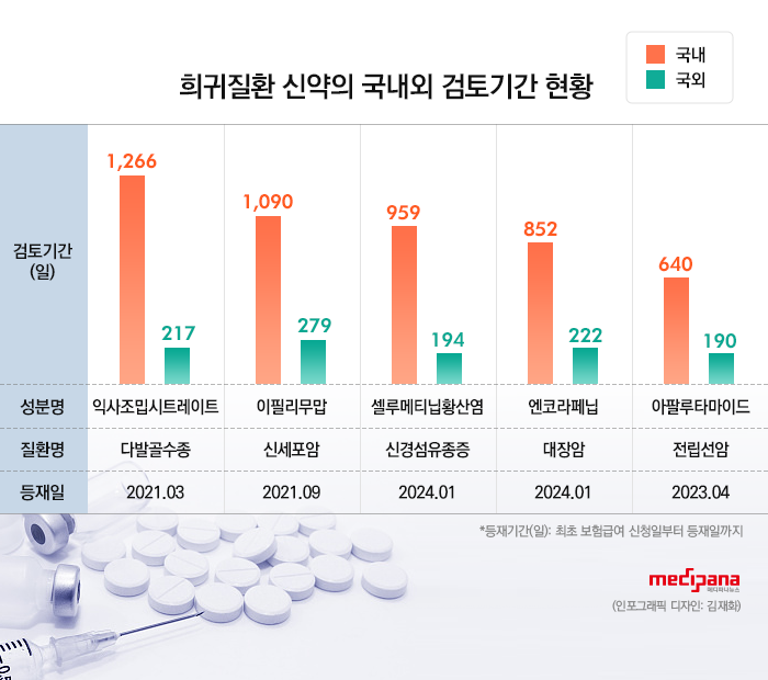특히 항암신약 및 희귀질환 신약의 경우 글로벌 출시 후 한국에 '비급여'로 출시되기까지 약 27~30개월 정도가 결린다.