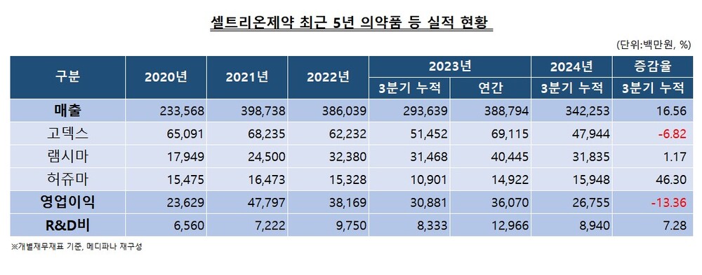 특히 회사는 바이오시밀러 판매에서 눈에 띄는 성과를 얻고 있다. 유방암·위암 치료제인 '허쥬마(트라스투주맙)'는 3분기 누적 기준 159억원을 기록하며 전년 동기 대비 46.3% 증가한 것으로 나타났다.
